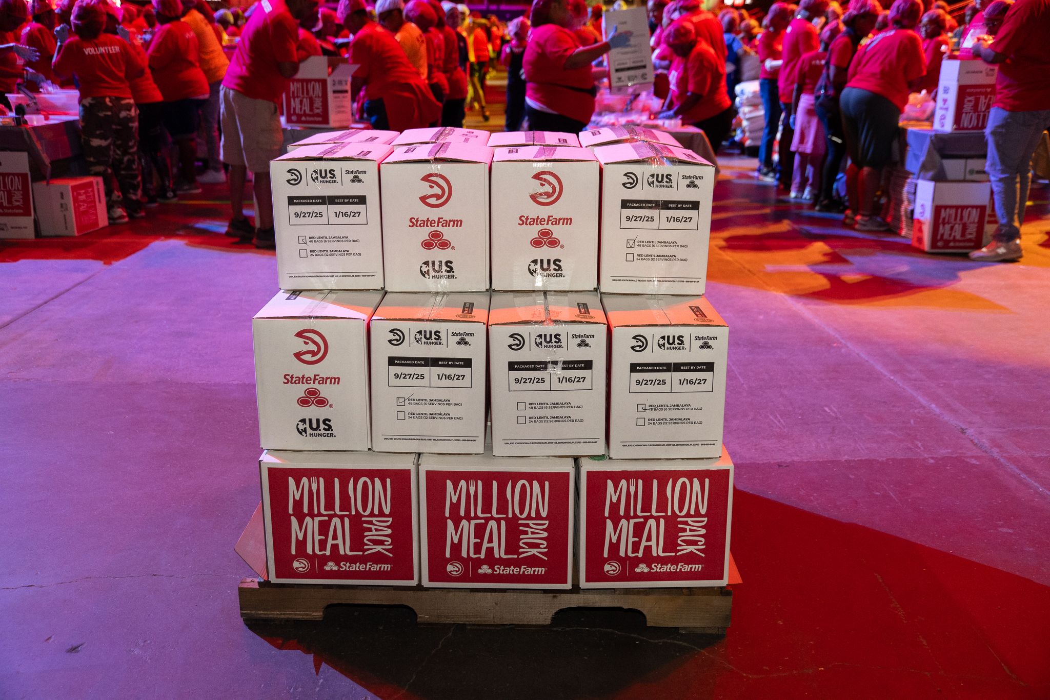 Earlier today, the Atlanta Hawks and State Farm brought more than 5,000 volunteers together at State Farm Arena for the 2025 Million Meal Pack, successfully assembling one million meals in a single day. Now in its fifth year, the initiative has grown into the Hawks’ largest community service effort, with this year’s total reaching an impressive 1,045,272 meals packed to support families across metro Atlanta.